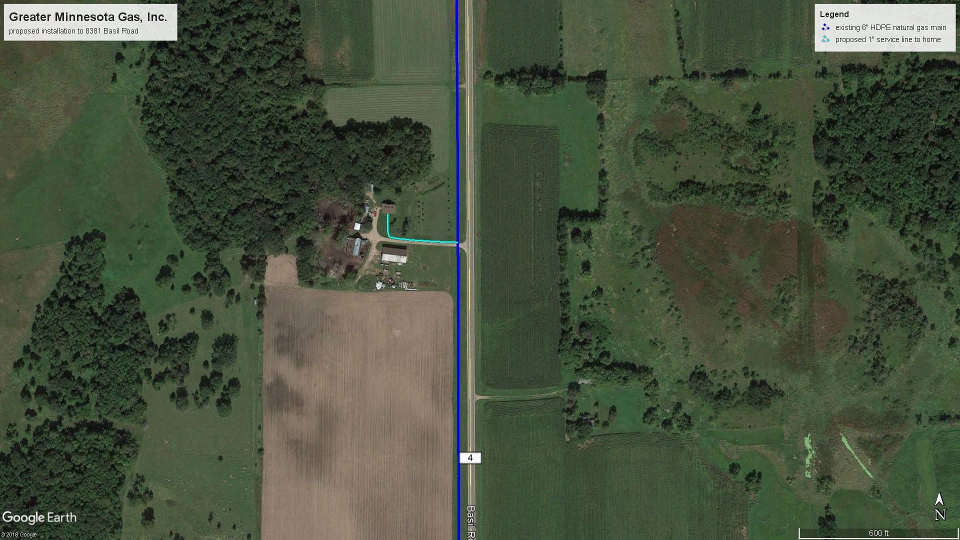 | Construction Description: | install 1" natural gas from existing main to home at 8381 Basil Road |