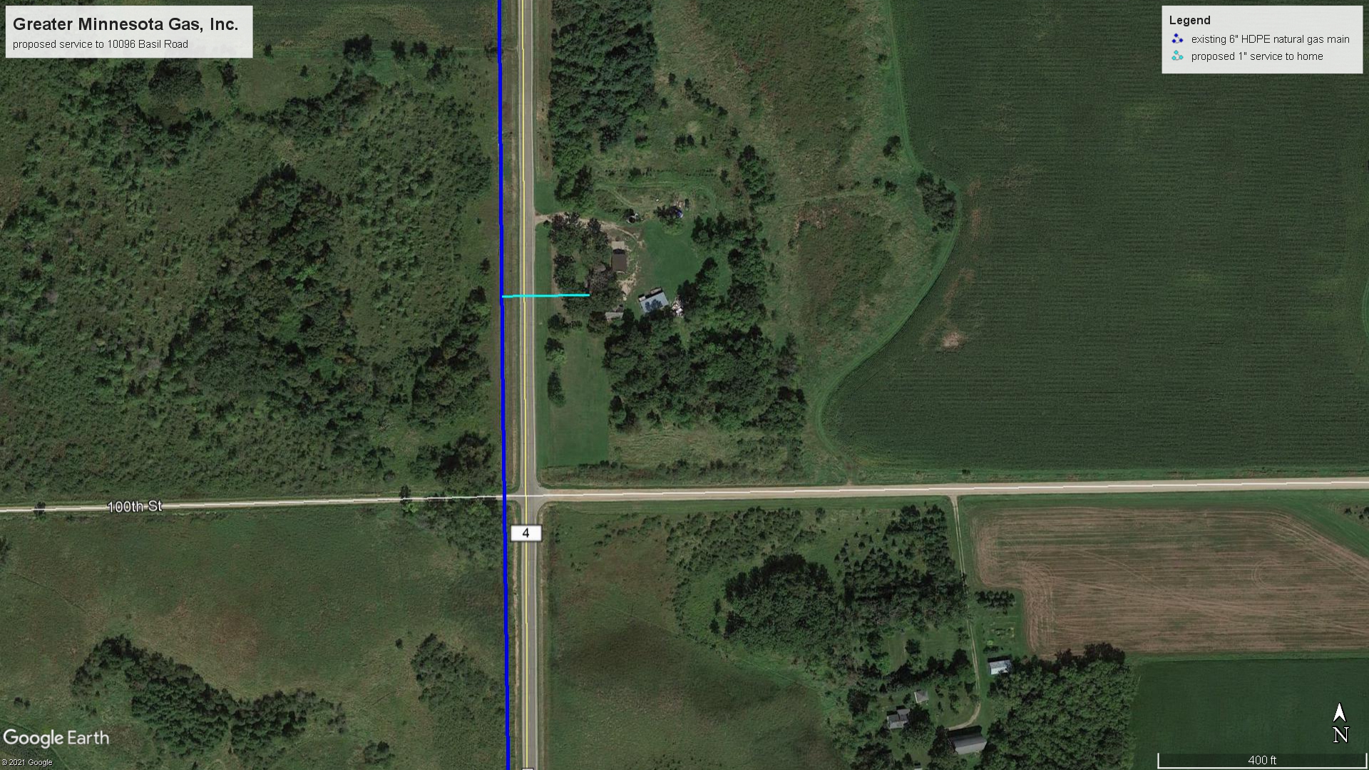 | Construction Description: | install 1" HDPE natural gas service line longside from existing 6" main installed in west ROW to home at 10096 Basil Road |