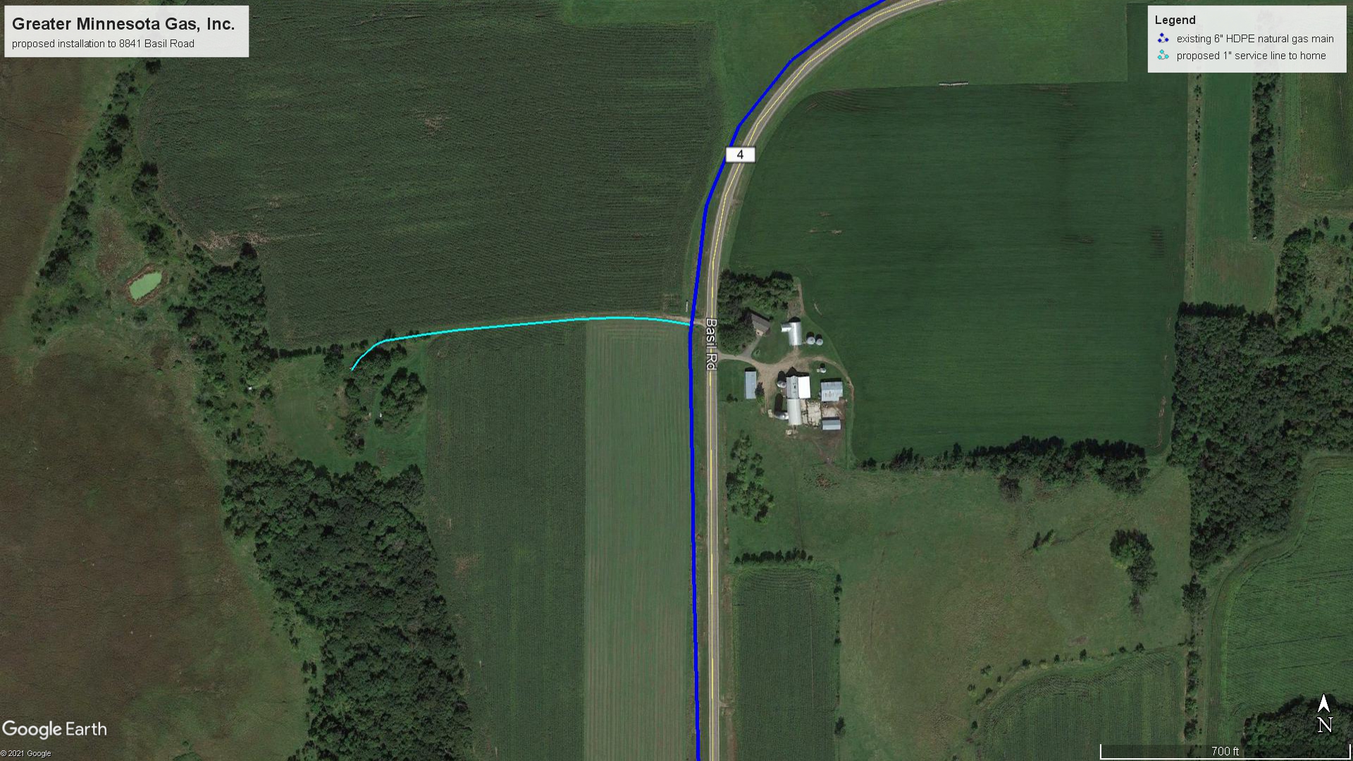| Construction Description: | install 1" HDPE natural gas service line crossing from existing 6" natural gas main installed in east right of way to home at 8841 Basil Road on the west side of the road |