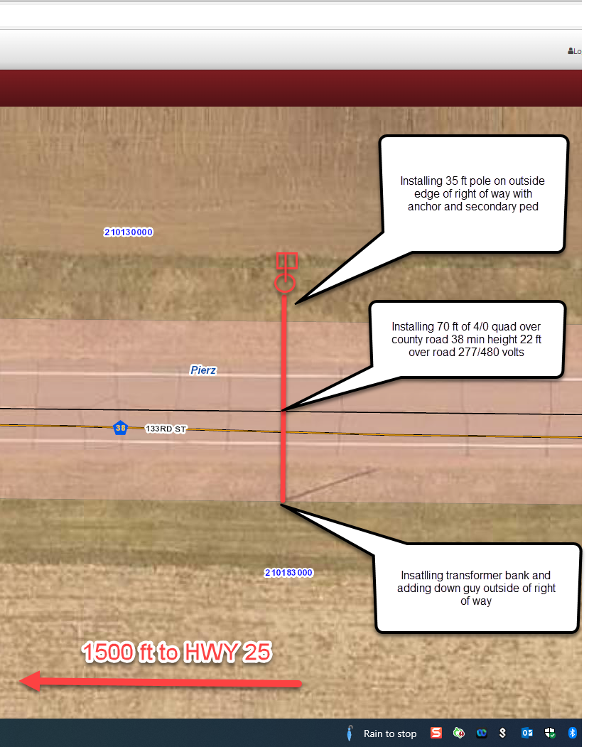 | Construction Description: | Installing transformer bank and secondary wire across CR 38 |