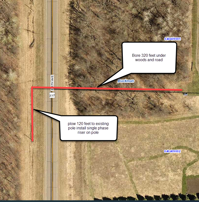 | Construction Description: | Boring conduit under 237 then plowing cable south to existing pole |