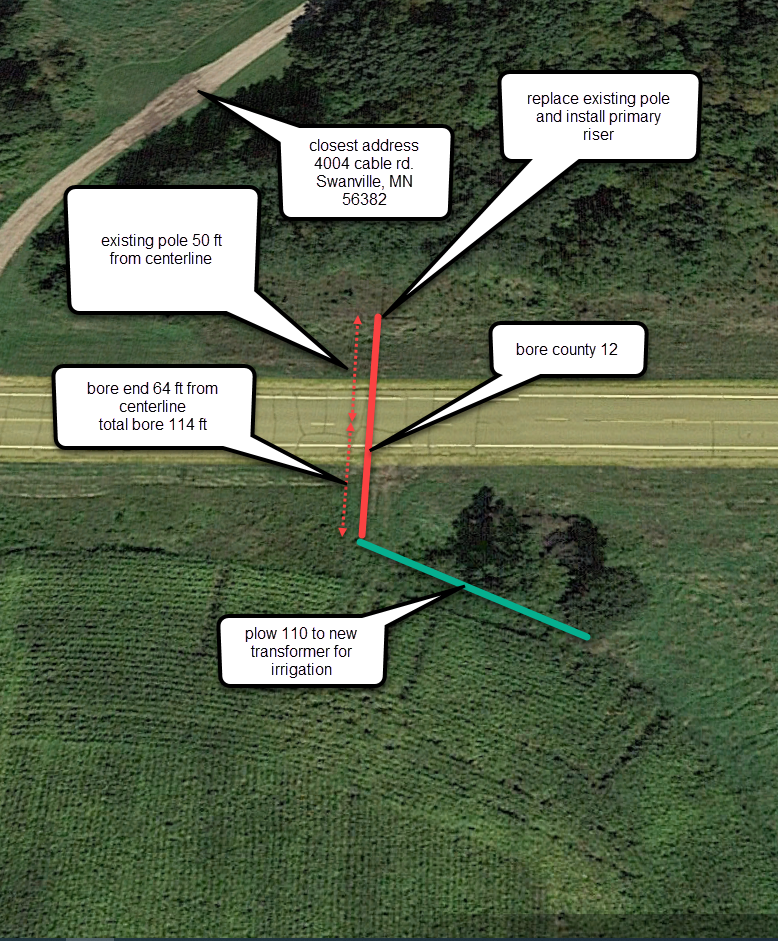 | Location Description: | approx 3.3 miles east of swanville on cable rd nearest address 4004 cable rd Swanville, MN 56382 |