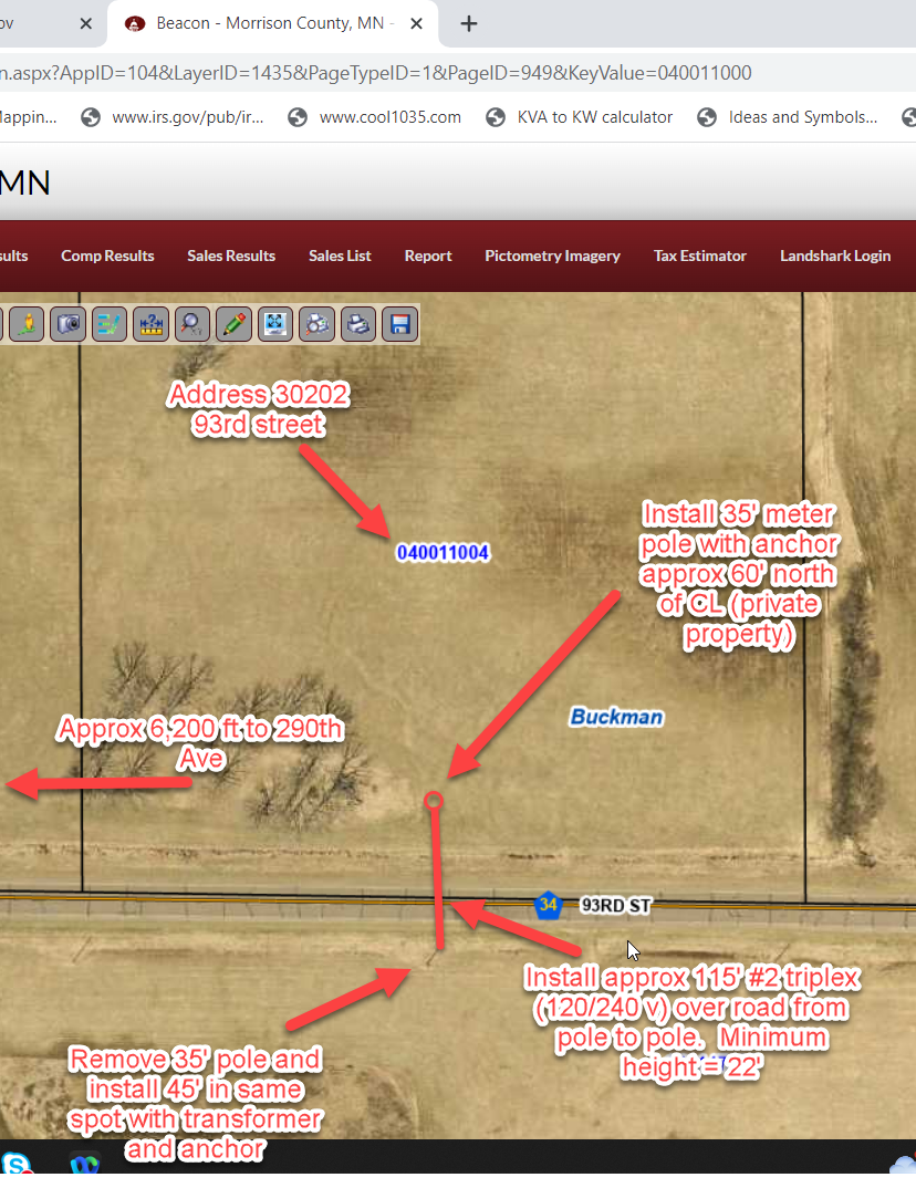 | Construction Description: | Replace 35' pole with 45' and install transformer with anchor on south side road. Install new 35' meter pole on north side of road (private property) and install triplex over road |