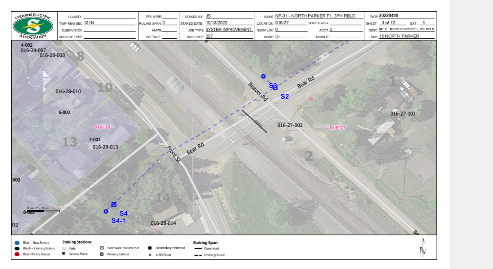 | Construction Description: | Retire some existing overhead single phase and install a new 3-phase underground along and in the west right of way of County road 5/ Bear Road. Than crossing Co Hwy 5 from North right of way to South Right of Way with a directional bore. |