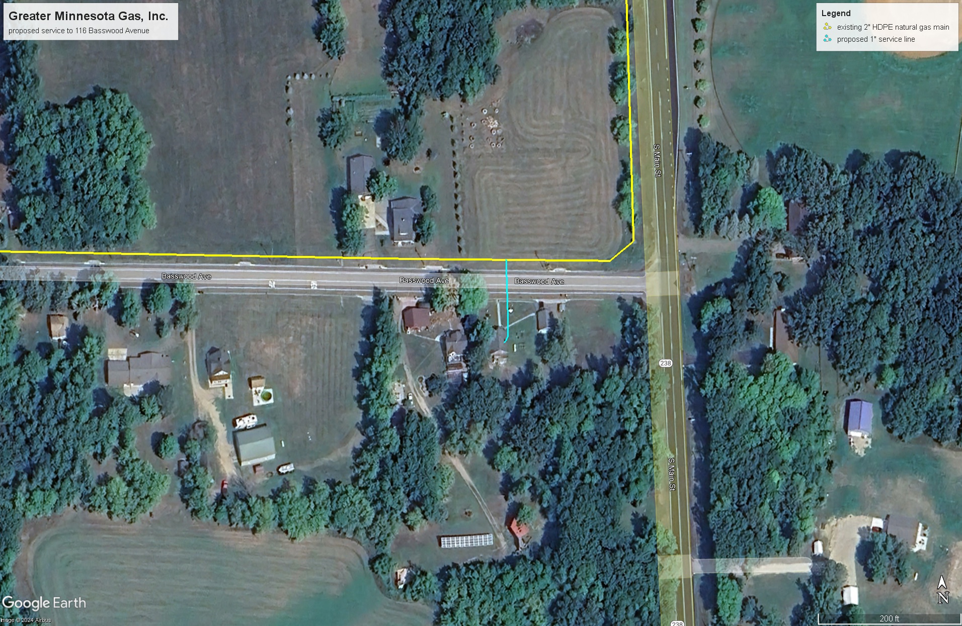 | Construction Description: | install 1" HDPE natural gas service line longside from existing 2" HDPE natural gas main installed in north CR 230 right of way to home at 116 Basswood Avenue |