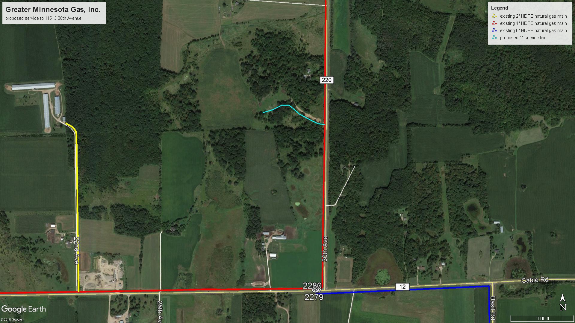 | Construction Description: | install natural gas service line from existing 4" natural gas main in the west right of way of CR 220 to home at 11513 30th Avenue |