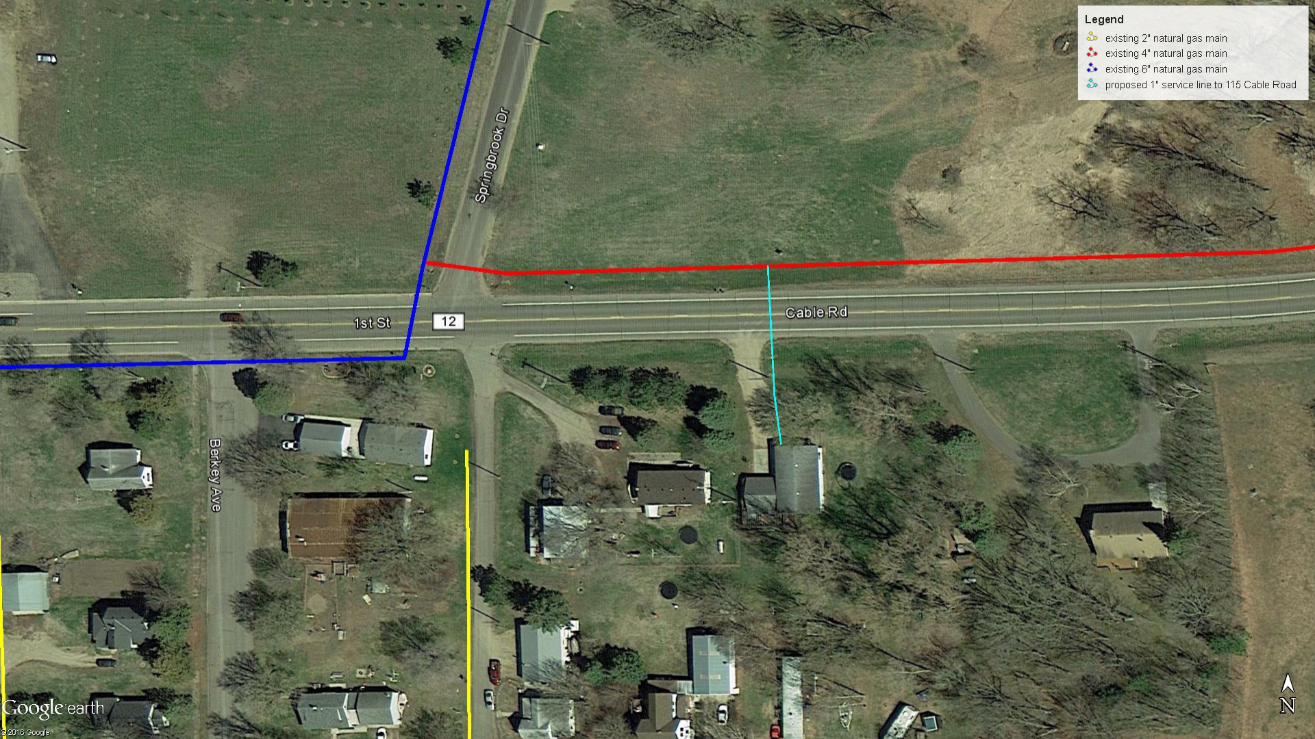 | Construction Description: | install natural gas service line fed from existing main in north CSAH 12 right of way to feed home at 115 Cable Road. |
