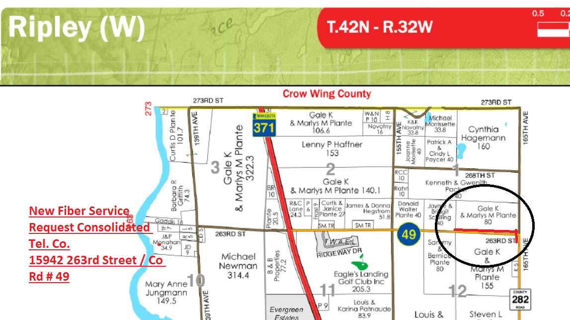 | Construction Description: | place new fiber cable from the sw corner of 263rd street and 165th ave, going north to the nw corner then west approx. 2900' to the address of 15942 263rd street |