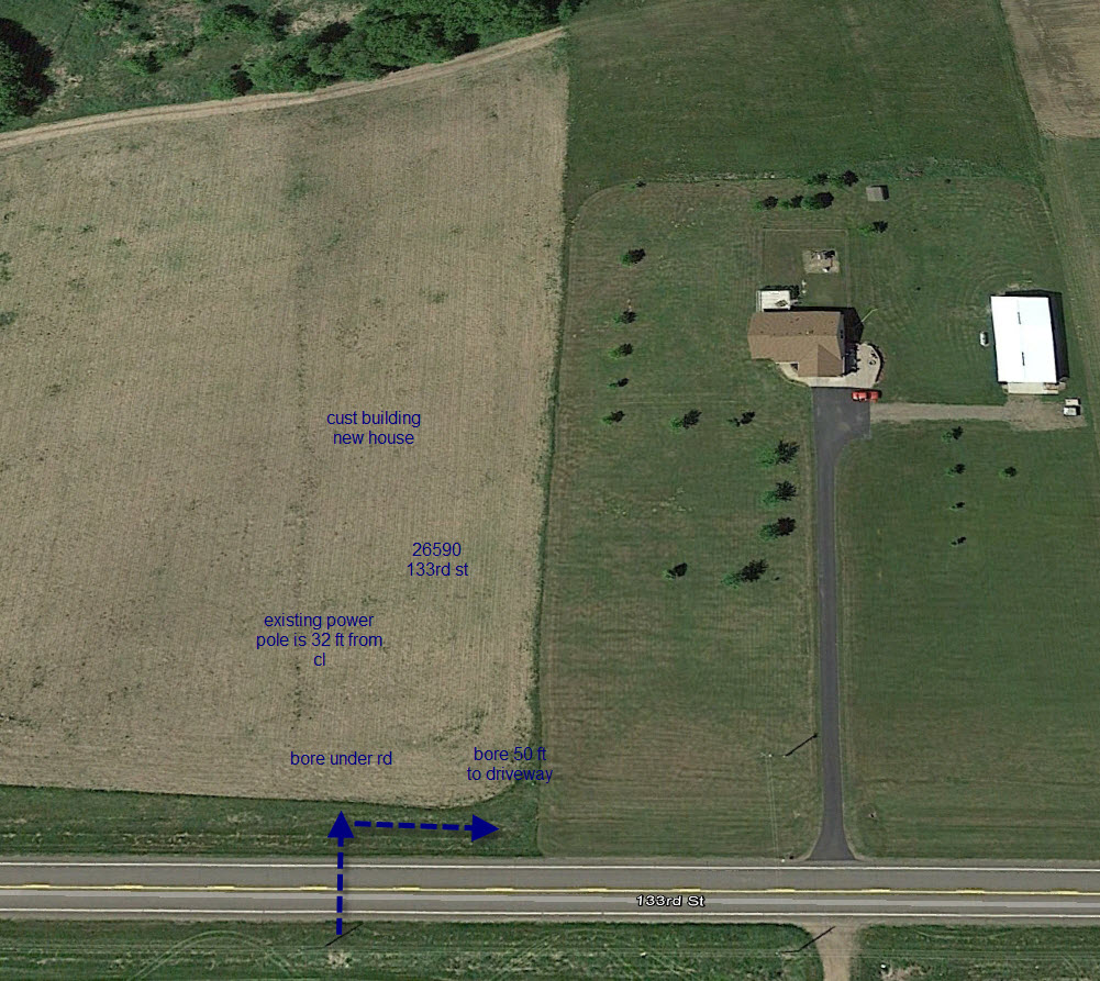 | Construction Description: | bore under rd at 25690 93rd st Pierz& then 50 ft along rd |