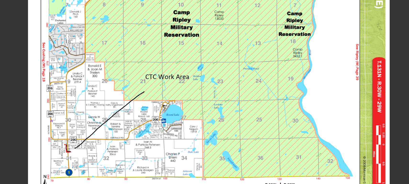 | Construction Description: | New Fiber Service for 24815 CO RD #1, Use existing conduit for road crossing and plow new service fiber @ 36" depth for 492' in the west R/W. From the existing fiber ped located south of the address of 24746 driveway on the east side of the road and going to the west side of the road using existing 1" conduit then going North to 24815 CR 1 |